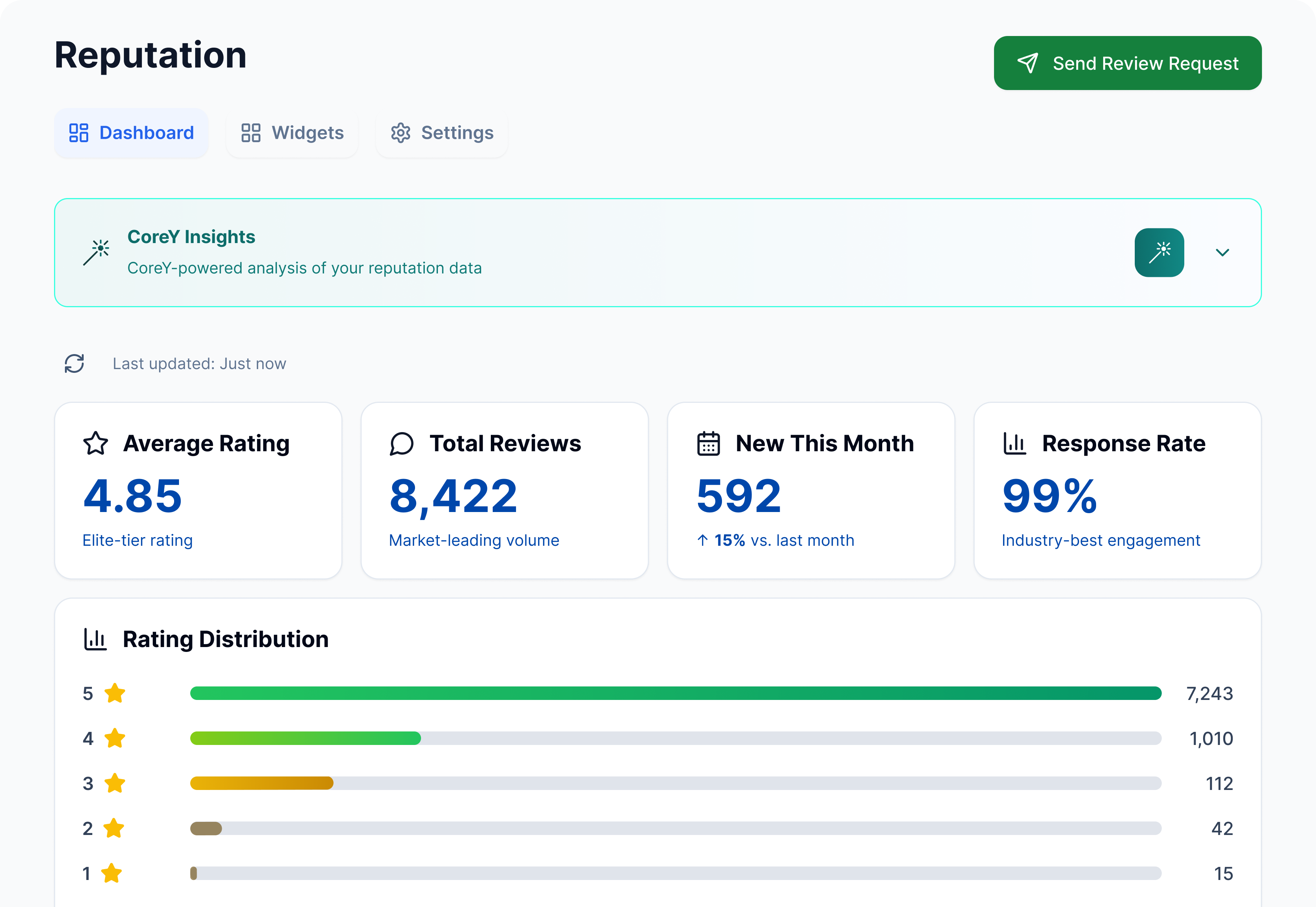 CoreY responds instantly with clear, relevant answers — no report building, no filters, no spreadsheets.